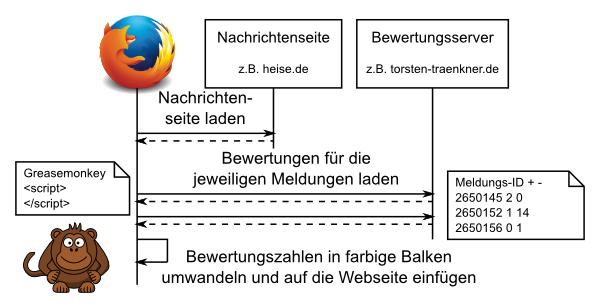 Das folgende Sequenzdiagramm gibt einen Überblick, wie das Greasemonkey-Skript funktioniert:
